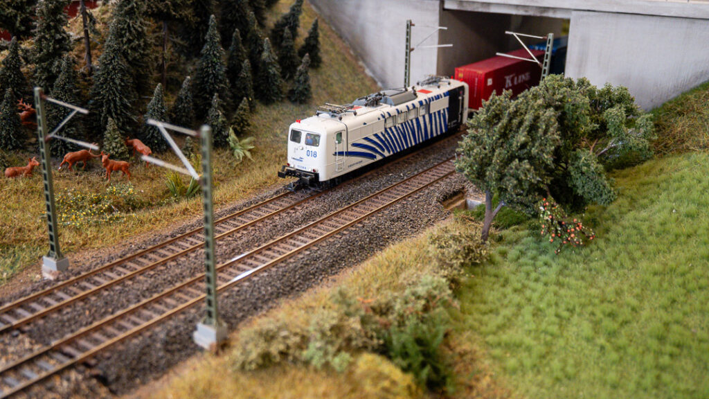 Im Mittelpunkt des Messeauftritts steht eine rund 25 Meter lange Modulanlage im Maßstab 1:87 (H0) mit DCC-Digitalbetrieb. Dargestellt wird eine zweigleisige Hauptbahn in Hundeknochen-Form mit Bahnhof sowie zwei Abstellbahnhöfen. Der Fahrbetrieb erfolgt vorbildgerecht in den Epochen II bis VI mit Dampf-, Diesel- und Elektrofahrzeugen. Gezeigt werden vorbildgerechte Zuggarnituren von Haupt- und Nebenbahnzügen.